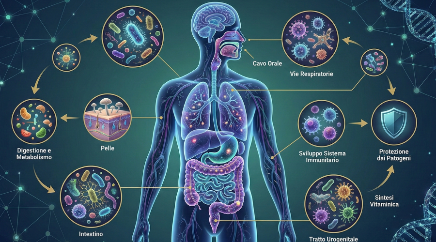 Il termine “microbiota” definisce la complessa comunità di microrganismi viventi che popola uno specifico ambiente, come il cavo orale o l’intestino. Spesso confuso con il “microbioma” (che comprende l’intero patrimonio genetico e i metaboliti) il microbiota rappresenta un ecosistema dinamico essenziale per la salute umana. Viene anche definito “l’organo nascosto”, contribuisce con un patrimonio genetico oltre 150 volte superiore a quello del genoma umano, svolgendo funzioni critiche nella regolazione immunitaria, nel metabolismo dei nutrienti e nella difesa dai patogeni.
